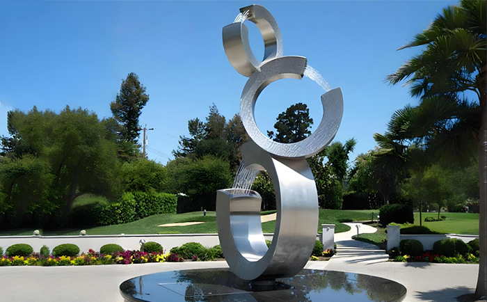 不銹鋼材質賦予了雕塑現代感與時尚氣息,其光滑的表面能完美地反射周圍的環境與光影,當噴泉開啟,水流與光影相互交織,在不同的時段、不同的天氣條件下,呈現出千變萬化的視覺效果。白天,陽光灑在水面與雕塑上,閃耀著金色的光芒;夜晚,配合精心設計的燈光,噴泉雕塑又成為夜空中最璀璨的存在,為城市的夜景增添了一份浪漫與神秘。
